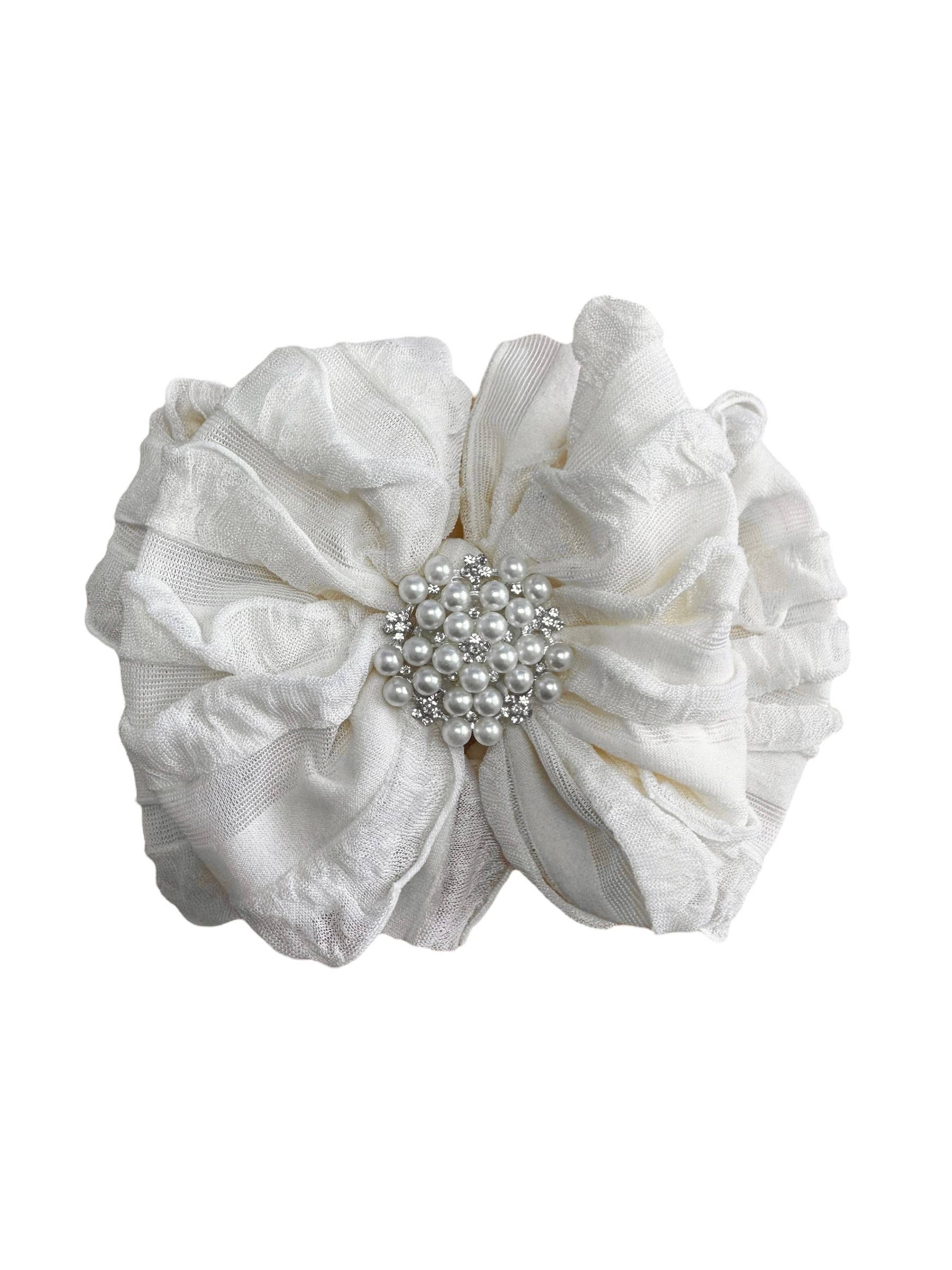 Ruffled Headband fits newborn to approximately 4 years.