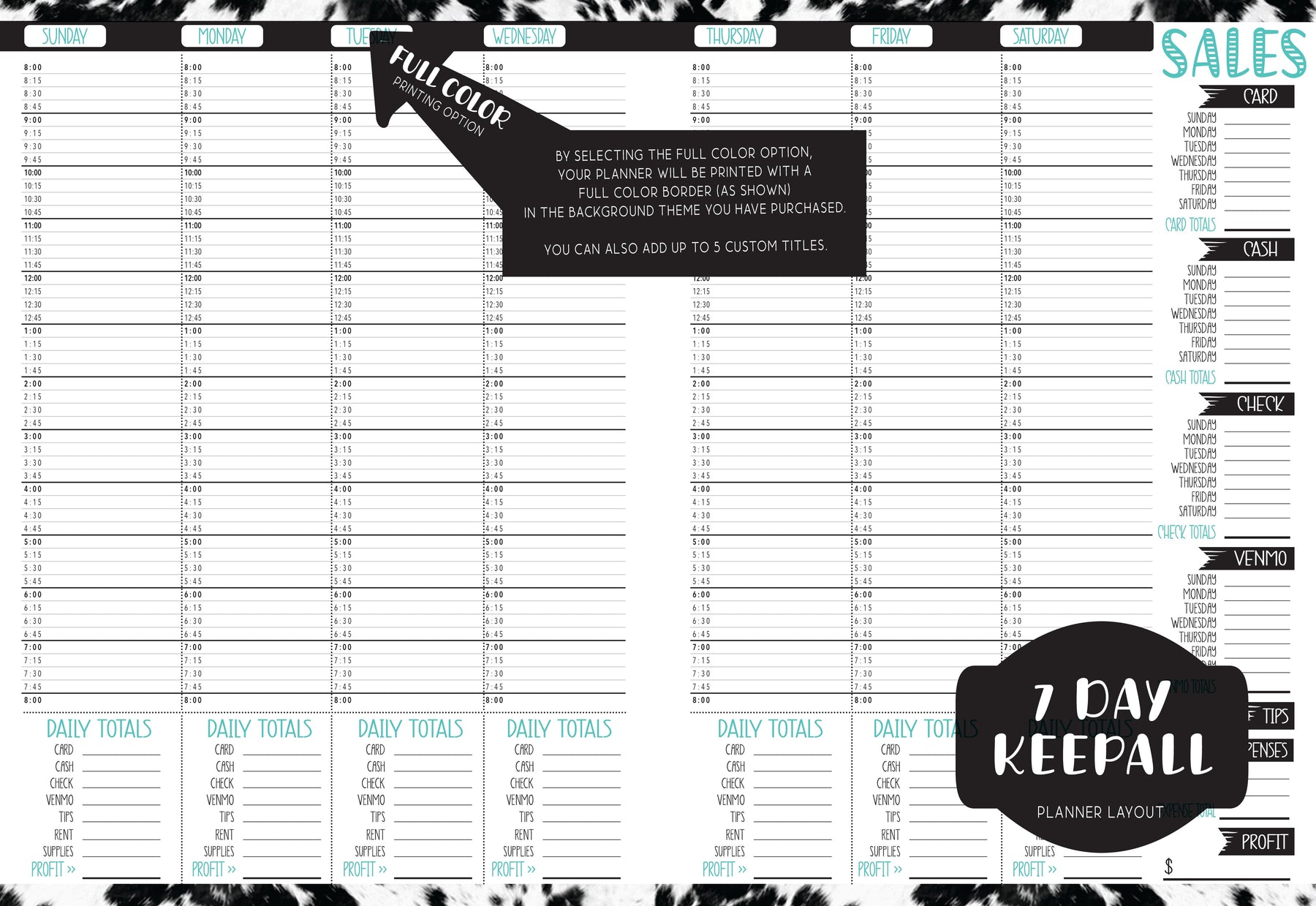 Our MEDIUM (7.125 x 9.25) planners offer the same features just printed smaller so your planner fits easier in your bag or purse.