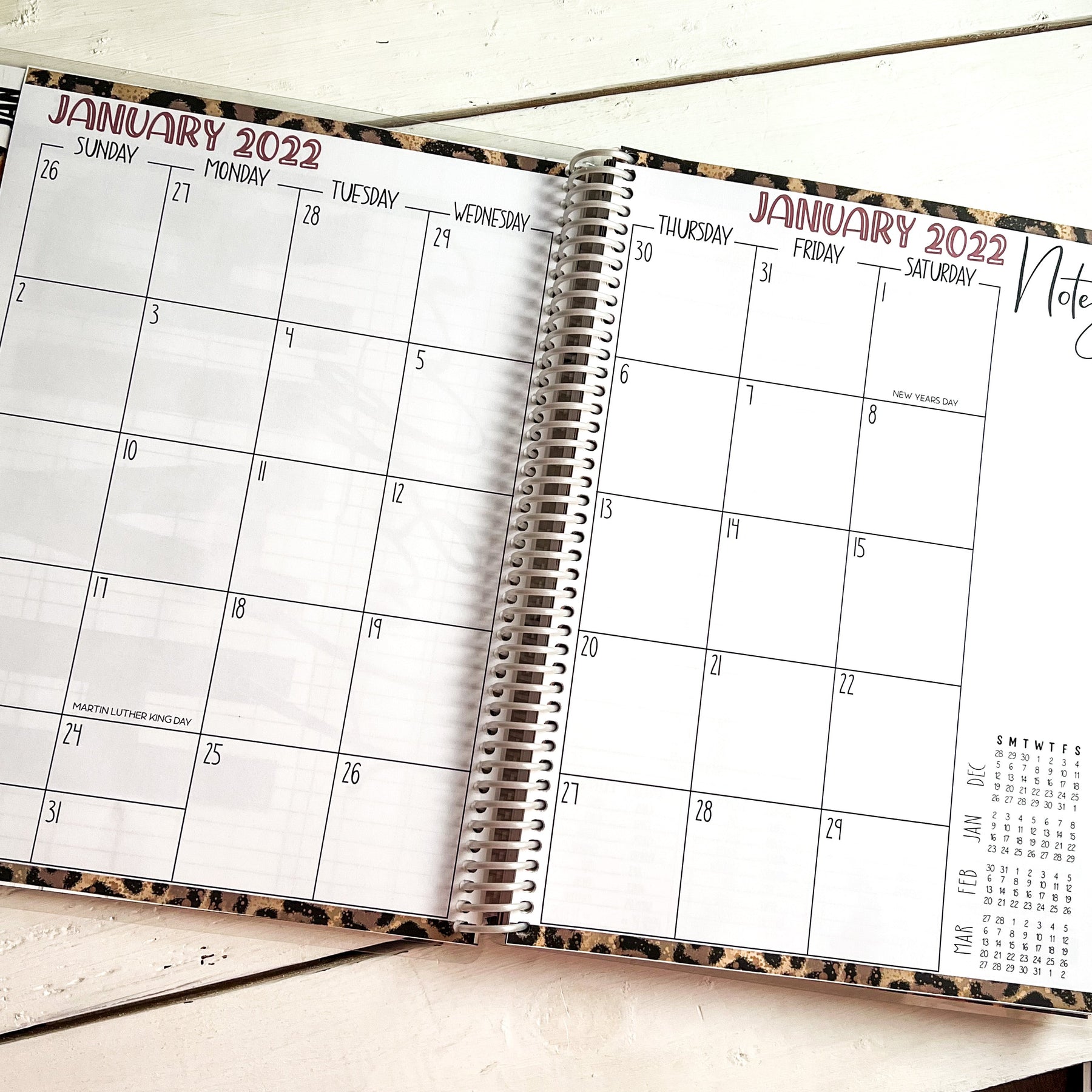 Our MEDIUM (7.125 x 9.25) planners offer the same features just printed smaller so your planner fits easier in your bag or purse.