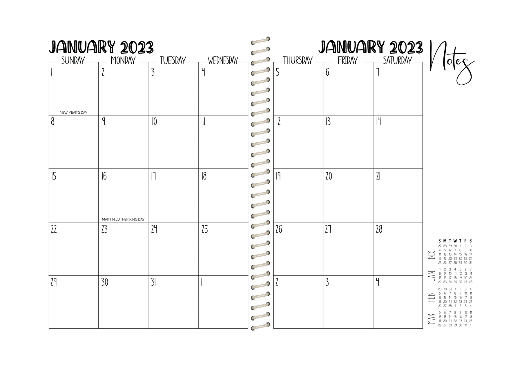 Our SMALL A5 (6.3125 x 8.375) planners boast a conveniently compact size, perfectly compatible with planner binder systems.