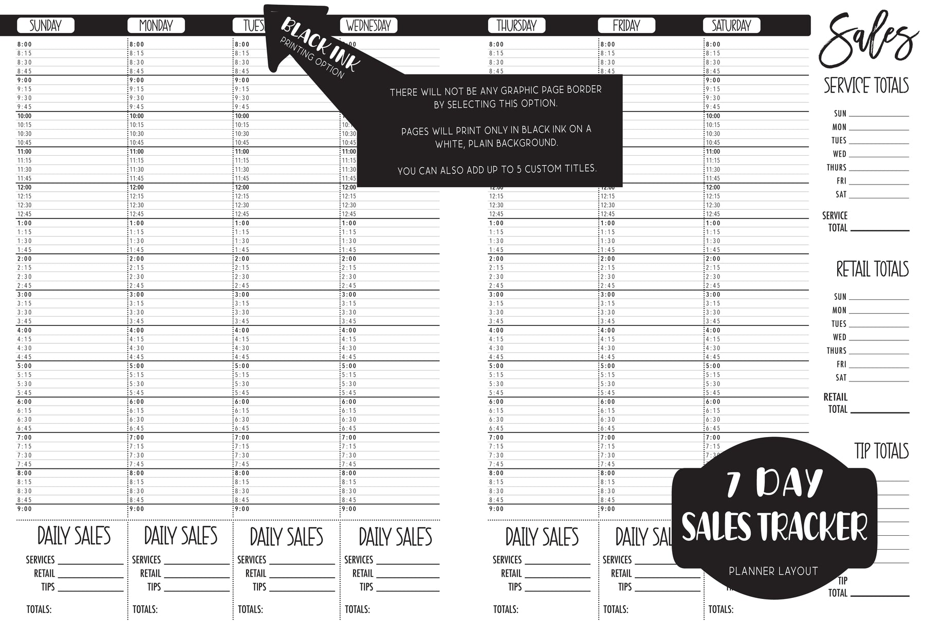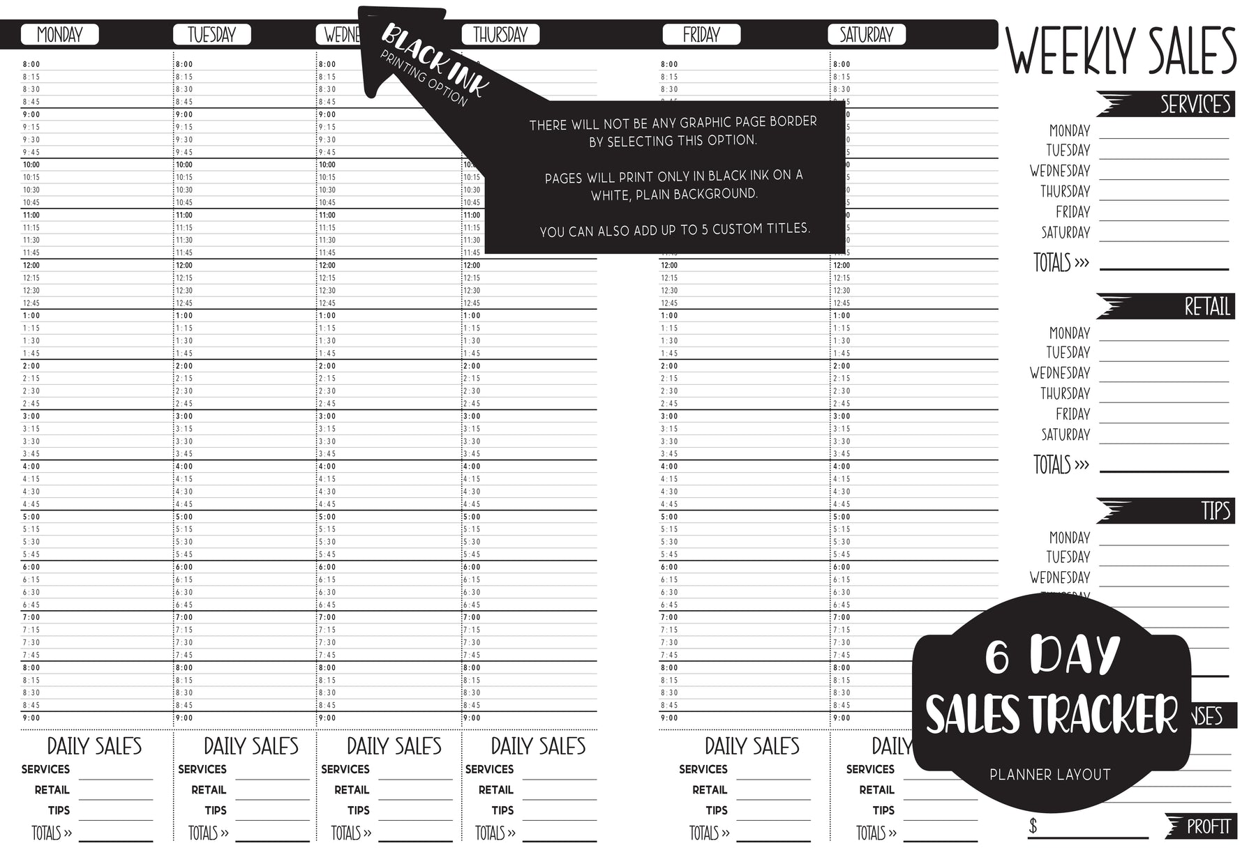 Our MEDIUM (7.125 x 9.25) planners offer the same features just printed smaller so your planner fits easier in your bag or purse.