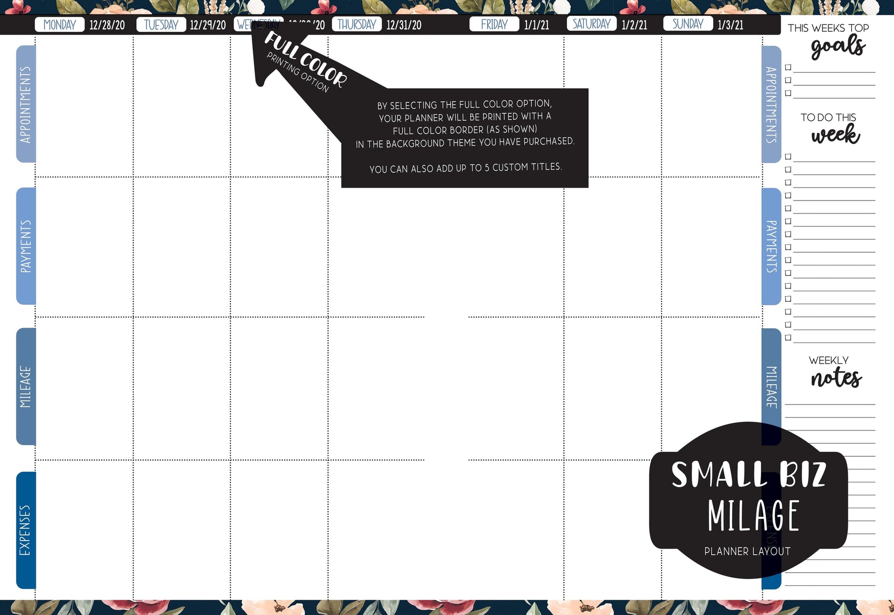 Our MEDIUM (7.125 x 9.25) planners offer the same features just printed smaller so your planner fits easier in your bag or purse.