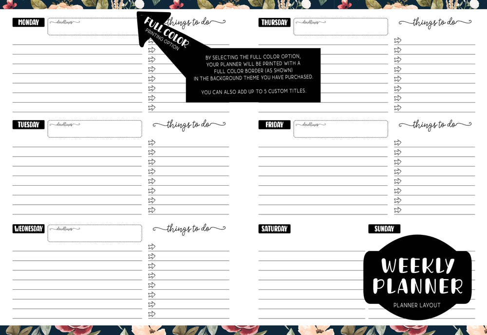 Our MEDIUM (7.125 x 9.25) planners offer the same features just printed smaller so your planner fits easier in your bag or purse.
